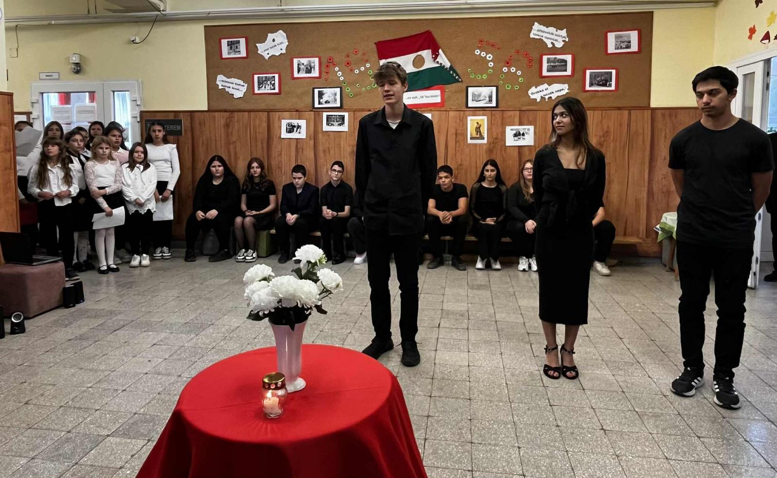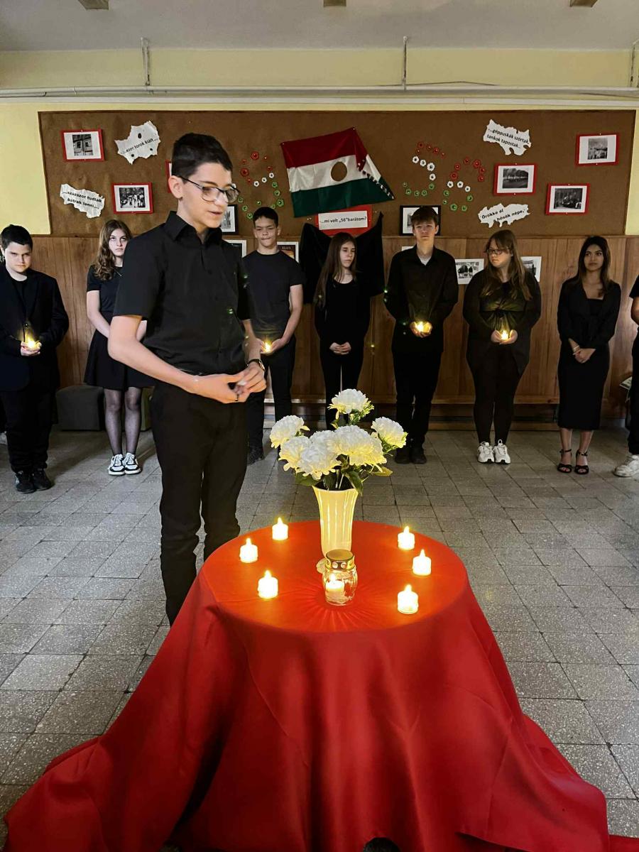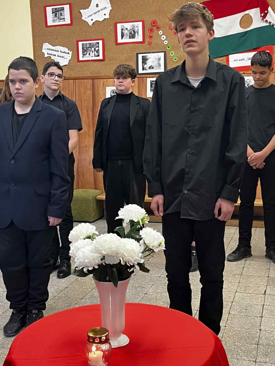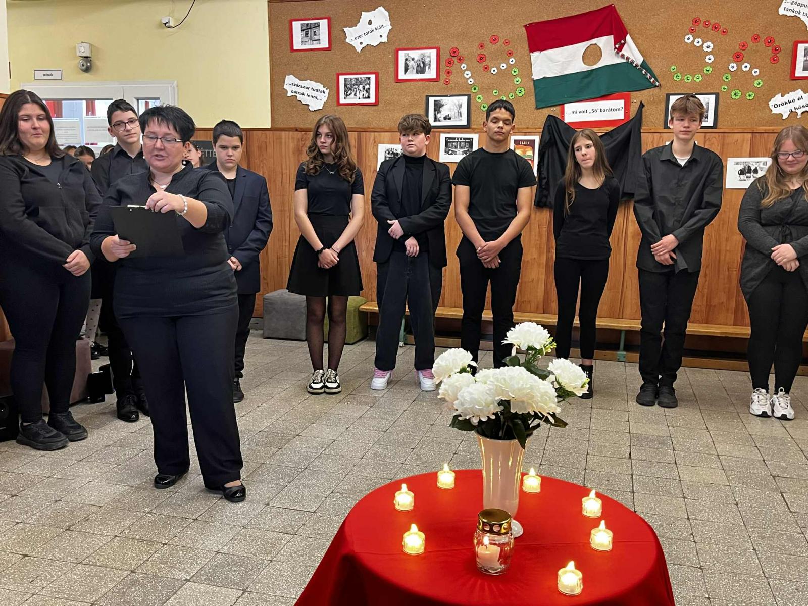A 8.osztályos és énekkaros tanulók műsora által méltó módon emlékezhettünk meg a 1956-os forradalom és szabadságharc eseményeiről, áldozatairól.