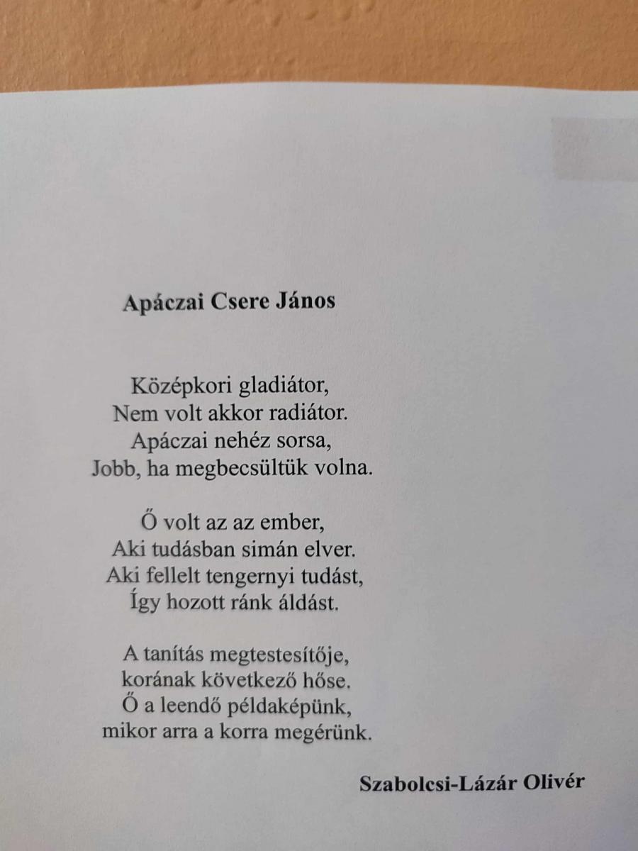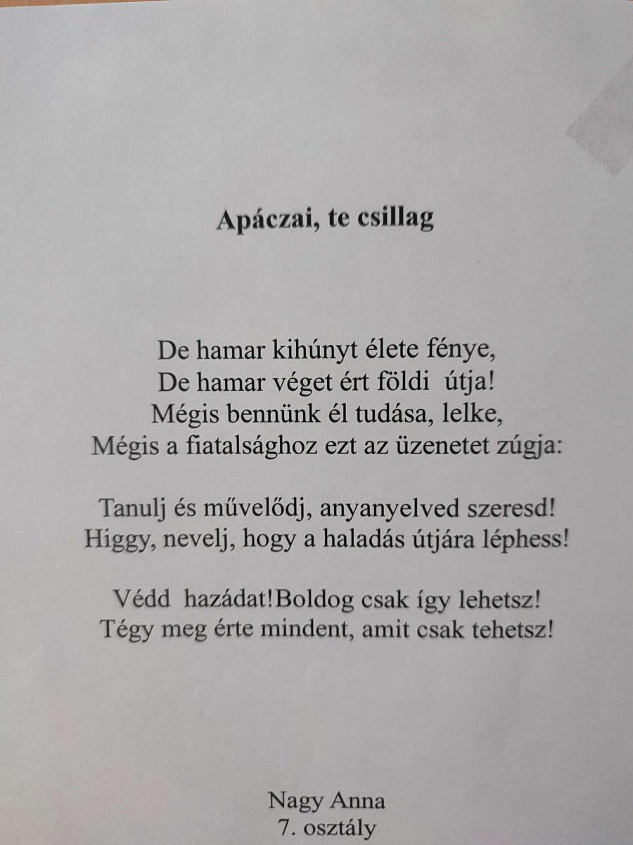 Apáczai Csere János emlékére országos vers- és novella író versenyt rendeztek Győrben. Nagy Anna 7.o.tanuló 3.helyezést ért el,