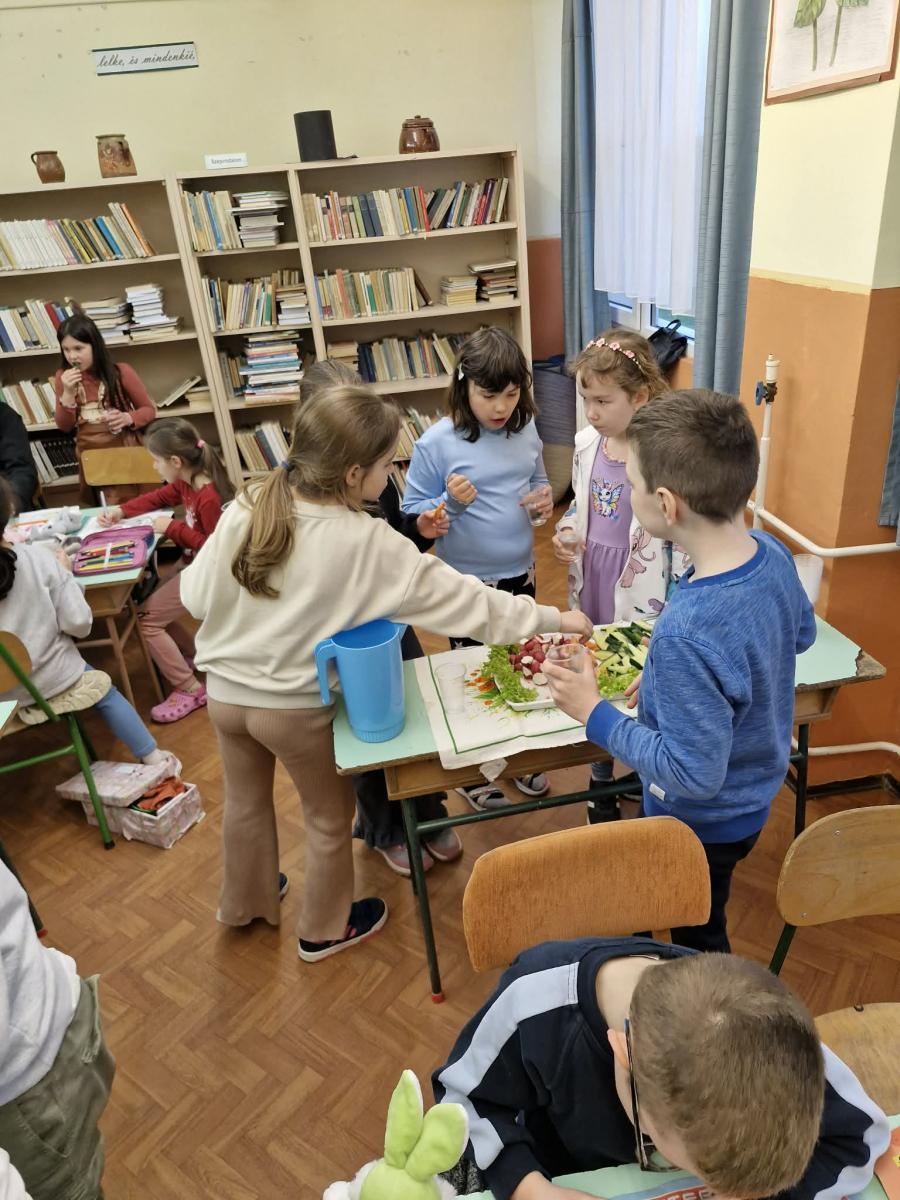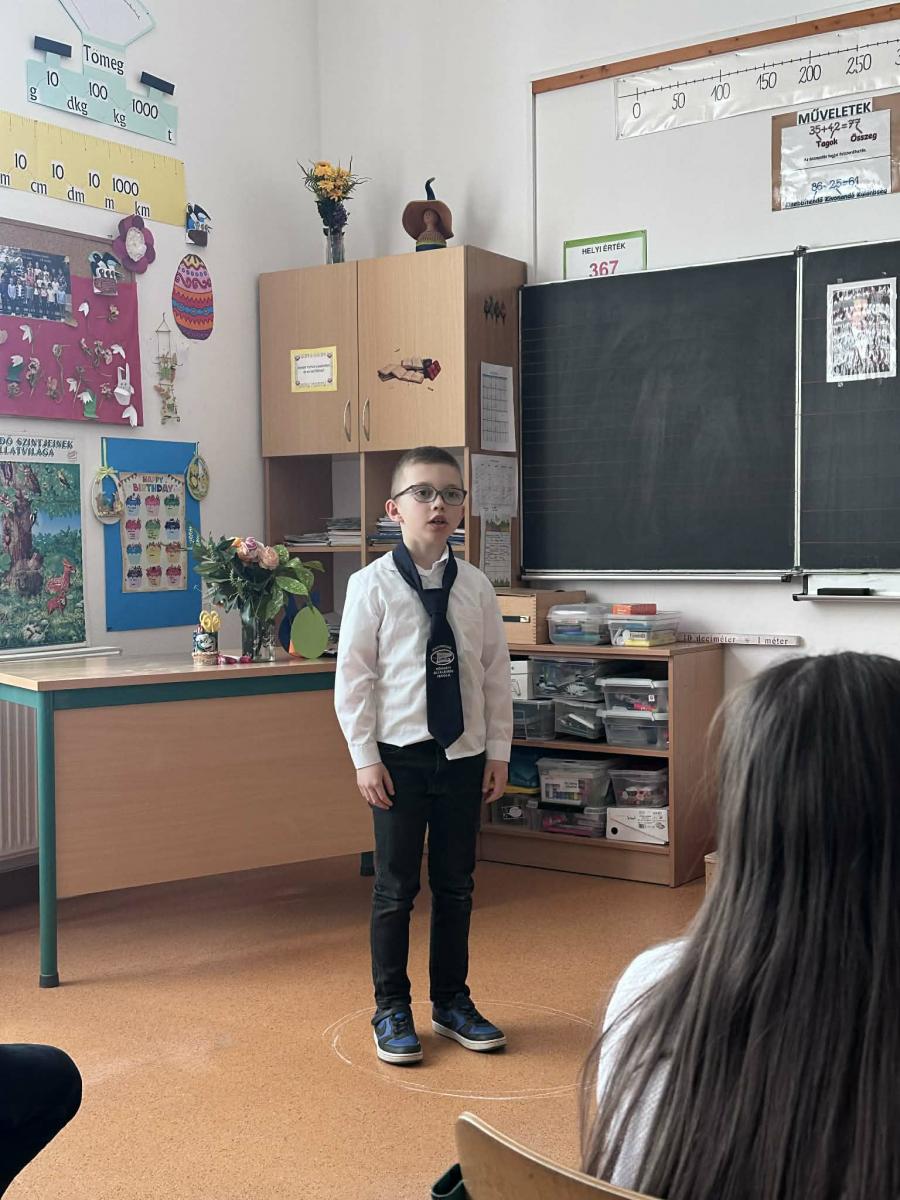 Iskolánkban 2026. március 26-án Húsvéti Nyusziváró délutánt szerveztünk az első, második és harmadik osztályos tanulók számára. A vidám hangulatú program során a gyerekek kézműves foglalkozáson vehettek részt, ahol húsvéti díszeket és nyuszis alkotásokat készítettek. A délután folyamán egy rövid, nyuszis mesefilm vetítésére is sor került, amelyet a gyerekek nagy örömmel néztek végig. A program különlegessége volt, hogy a tanulók elhozhatták kedvenc plüssnyuszijukat is, akikkel közös fotók készültek, így még emlékezetesebbé vált a rendezvény. A jó hangulatú délután nagyon sikeres volt: a gyerekek vidáman, élményekkel gazdagodva tértek haza.