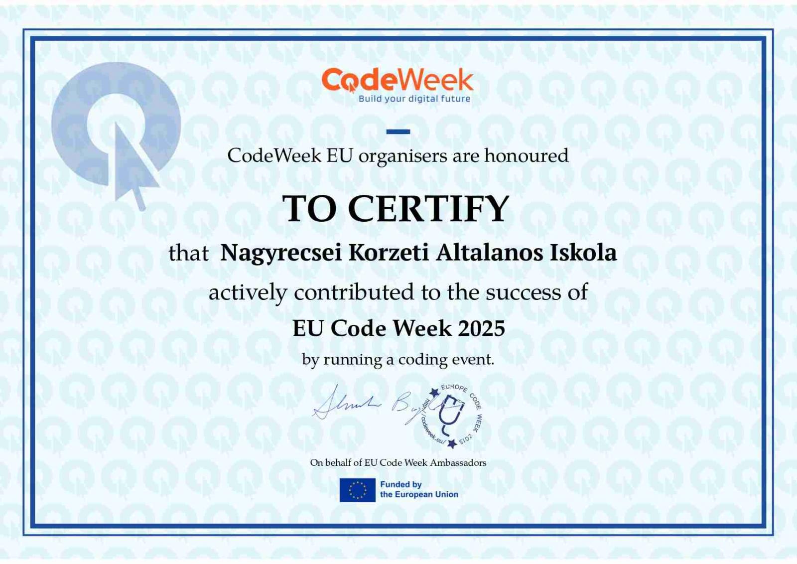 2025.10.11.-10.26. Codeweek – Európai Programozási Hét Az iskola diákjai az idei tanévben is részt vettek a kódolás hete programban digitális kultúra tanórákra szervezett tevékenységeken keresztül. Online és offline lehetőségeket használva bővítették ismereteiket a programozás, kódolás sokszínű világában. A programozás megtanulásával jobban tájékozódunk a gyorsan változó világban, segít megérteni a különböző technológiák működését, készség- és képességfejlesztő hatásának köszönhetően pedig új ötleteket és innovációkat dolgozhatunk ki.